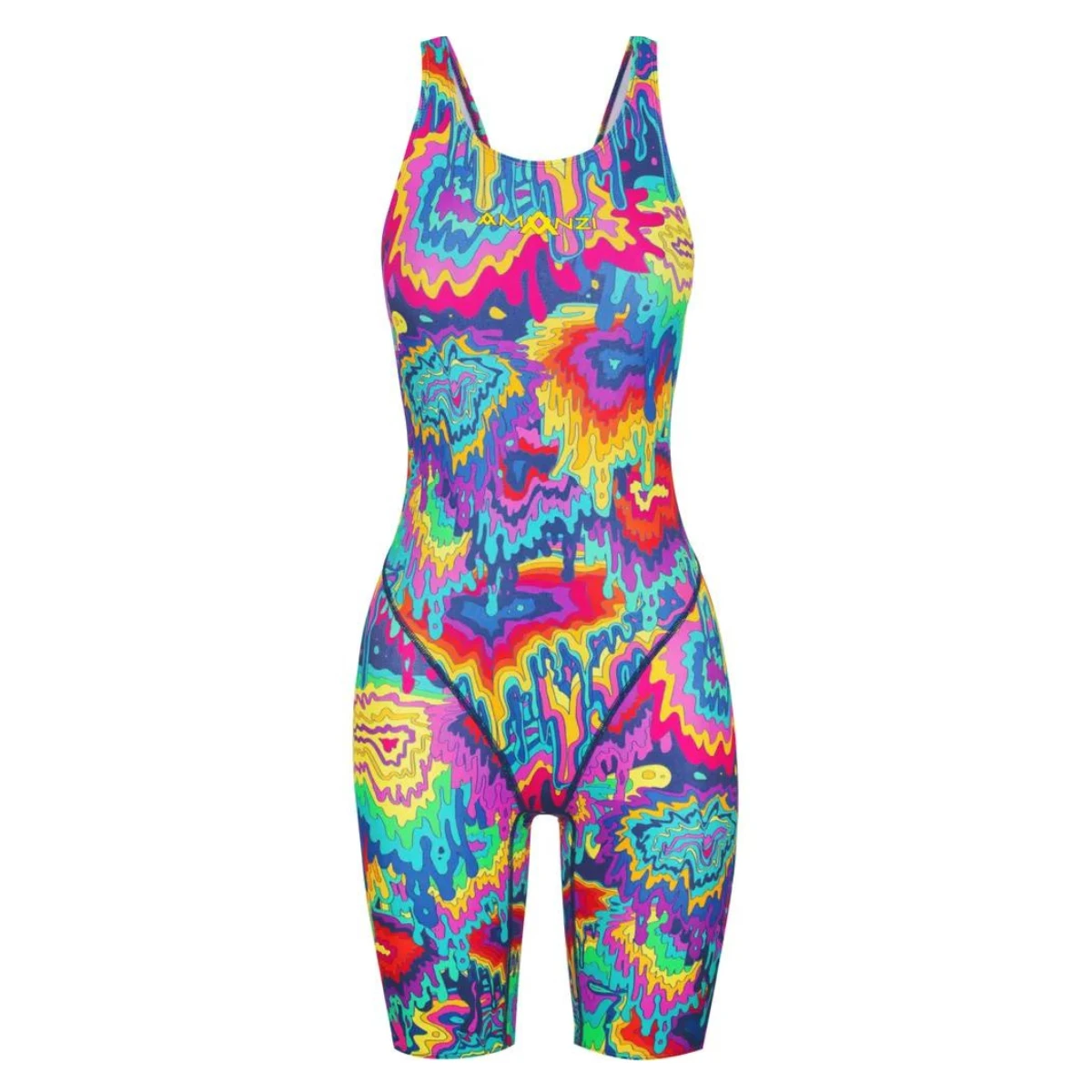 The Euphoria Kneelength is an entry level racing swimsuit that is also suitable for training. The kneelength has been engineered to fit the needs of competitive and active swimmers, as well as triathletes and open water swimmers. The wide shoulder straps and back band are placed between the shoulder blades allowing maximum freedom and ease of movement whilst swimming. They also provide added support to the bust area. The wide open back follows the natural contours of the body providing an ergonomic fit and superior comfort.
