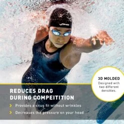 The FINIS 3D Dome Cap is designed to reduce drag during competition. It is made from high-quality silicone with two different densities. The sides of the cap are made of thinner material, decreasing pressure on your head and creating a secure fit.