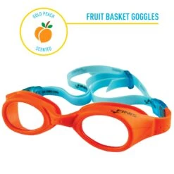 The Fruit Basket goggles are available in four bright colors and scents – Creating the most fun kids goggle. The soft frame provides a watertight fit for sensitive faces. The Fruit Basket goggles feature a dual silicone strap for added comfort.