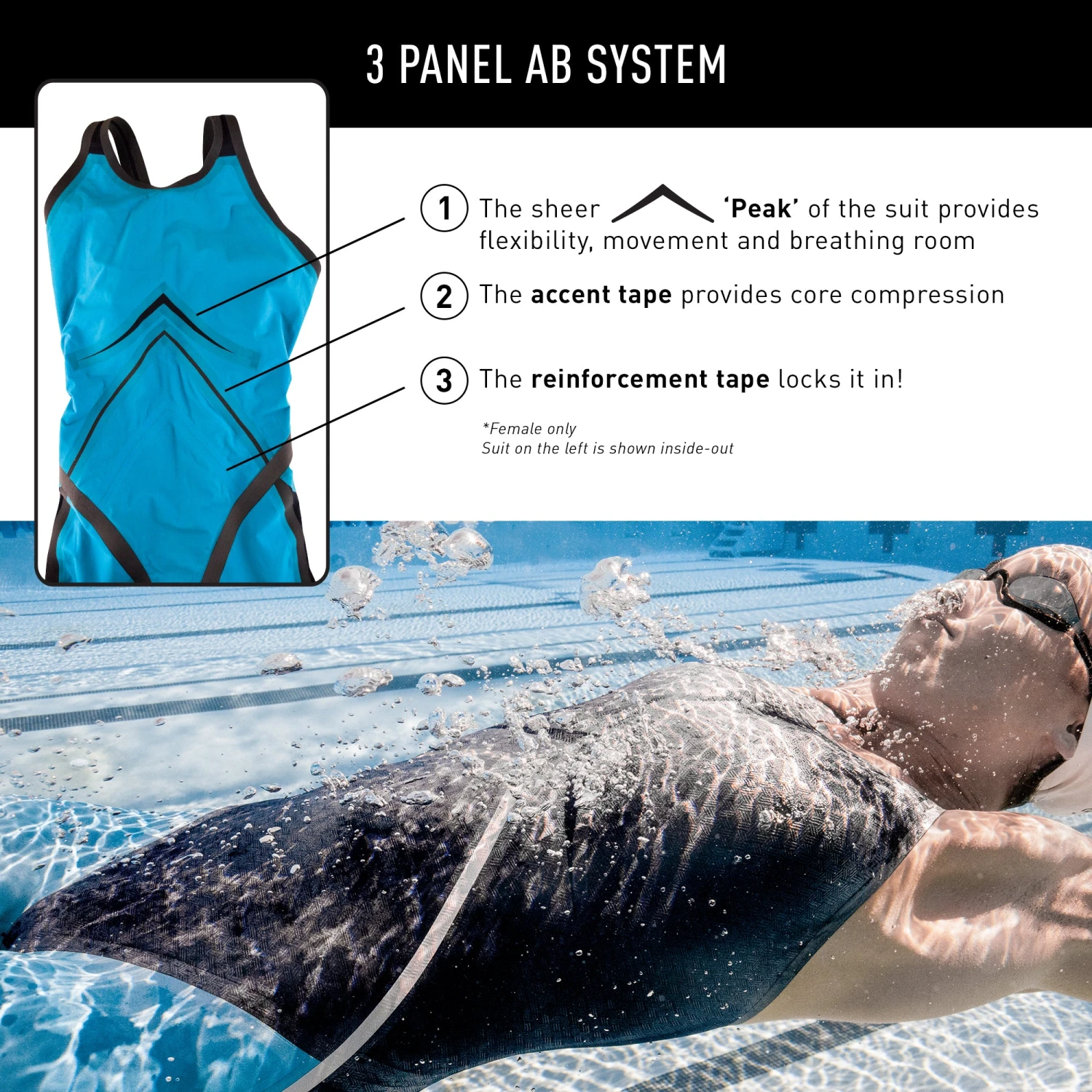 Innovative seam pattern wraps from the front of the hips to the back, locking the swimmer into optimal body position - ABDOMINAL SYSTEM