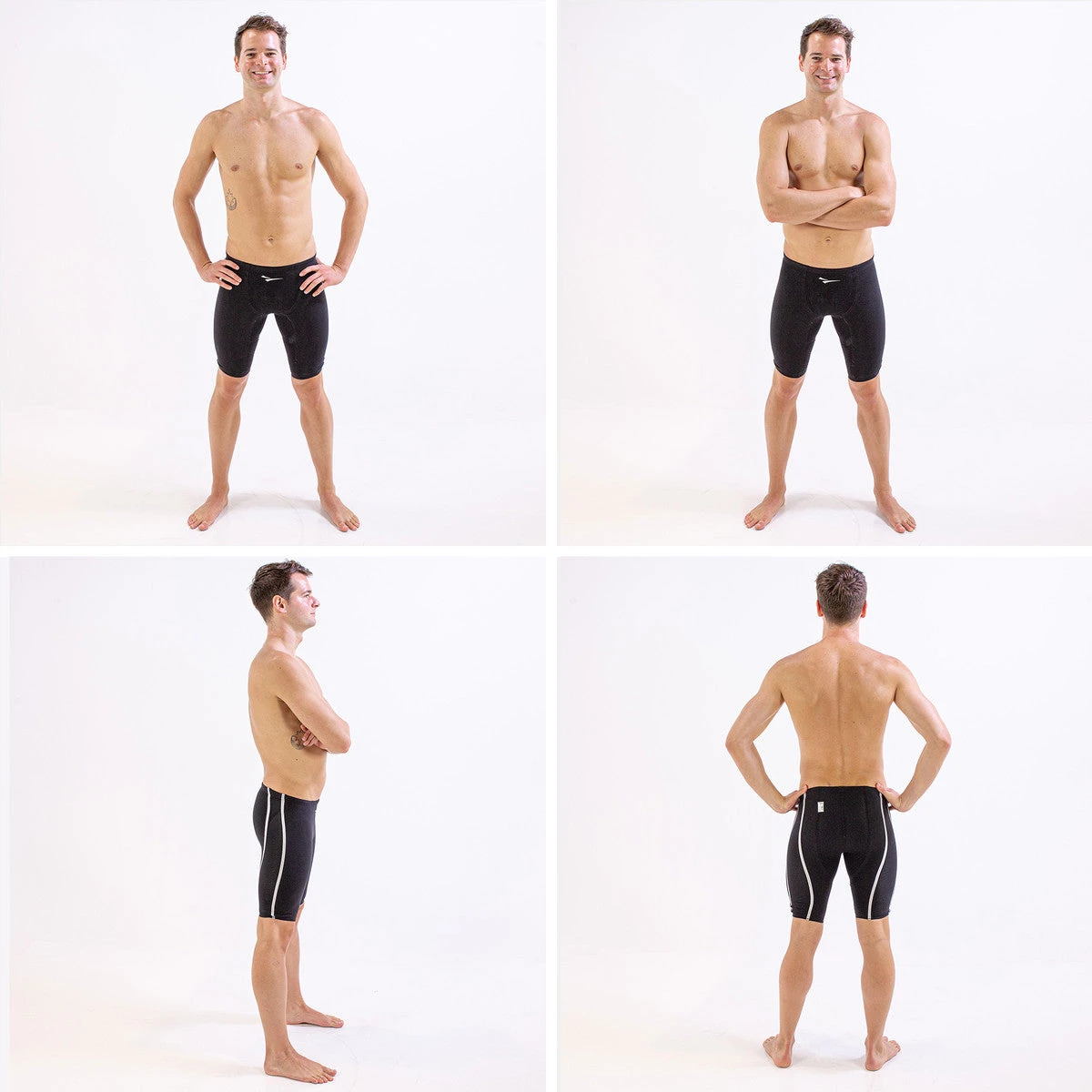 The Rival is an elite-level technical racing suit designed using three main principles: compression, robust seam structure and fit. We used these fundamentals to bring an authentic tech suit to market and provide our athletes with a product that is backed up by research and innovation. The Rival is constructed using two fabrics: the one-way stretch fabric increases compression, while the two-way stretch fabric allows optimal range of motion. The combination of the two fabrics supports muscles and enables muscle efficiency. Seams are strategically placed to strengthen the bond between fabrics and enhance compression in adjacent areas. Designed in California at the FINIS Stroke Lab.