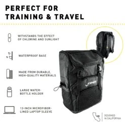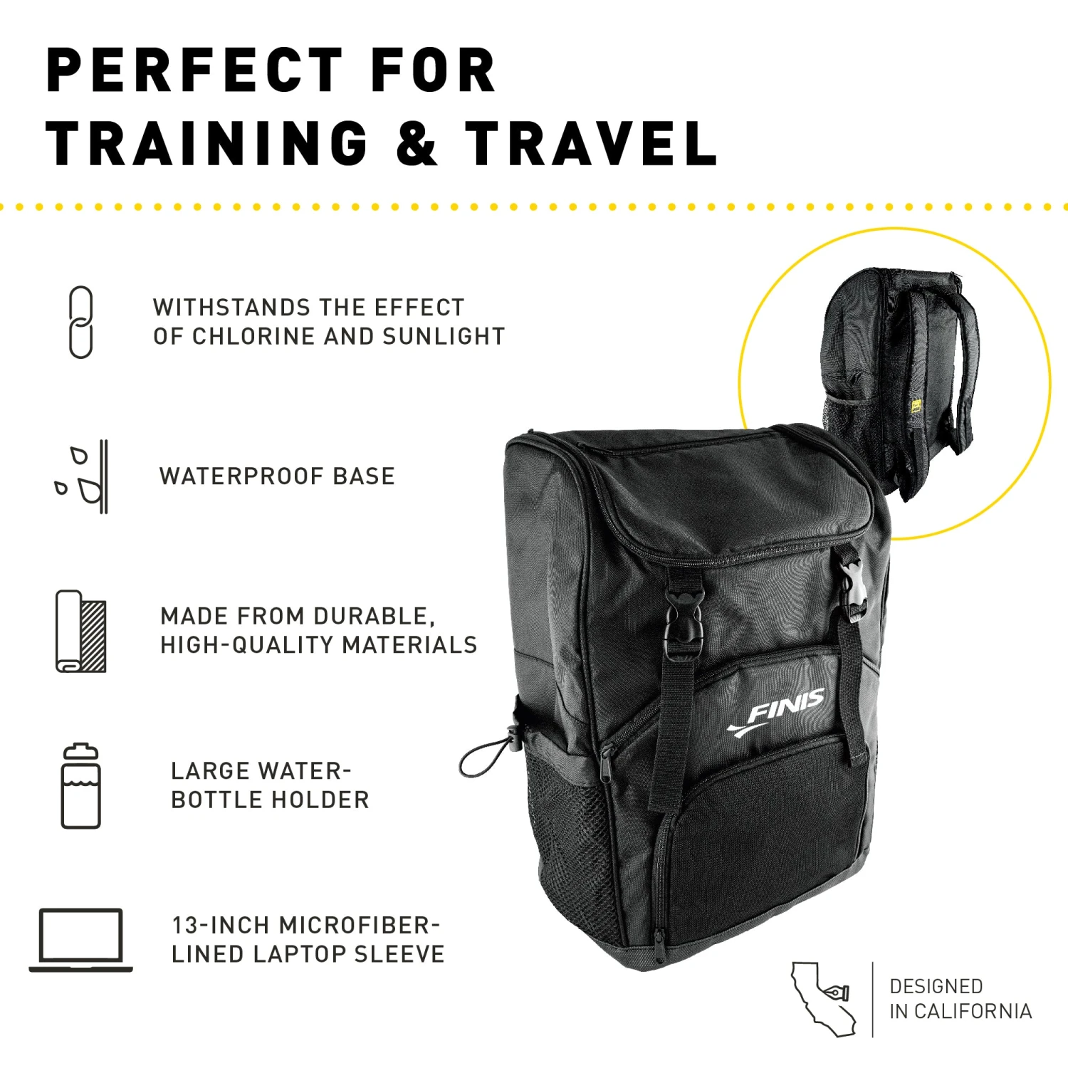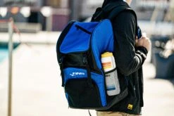 The Team Backpack is designed to provide swimmers with a sturdy and spacious backpack for everyday use. This bag includes a waterproof base and mesh compartment to keep your dry stuff dry and let your wet stuff air out. Use the adjustable mesh side pocket to store a water bottle or shampoo without fear of them slipping out. The large internal sleeve is perfect for a kickboard, notebook, or laptop.