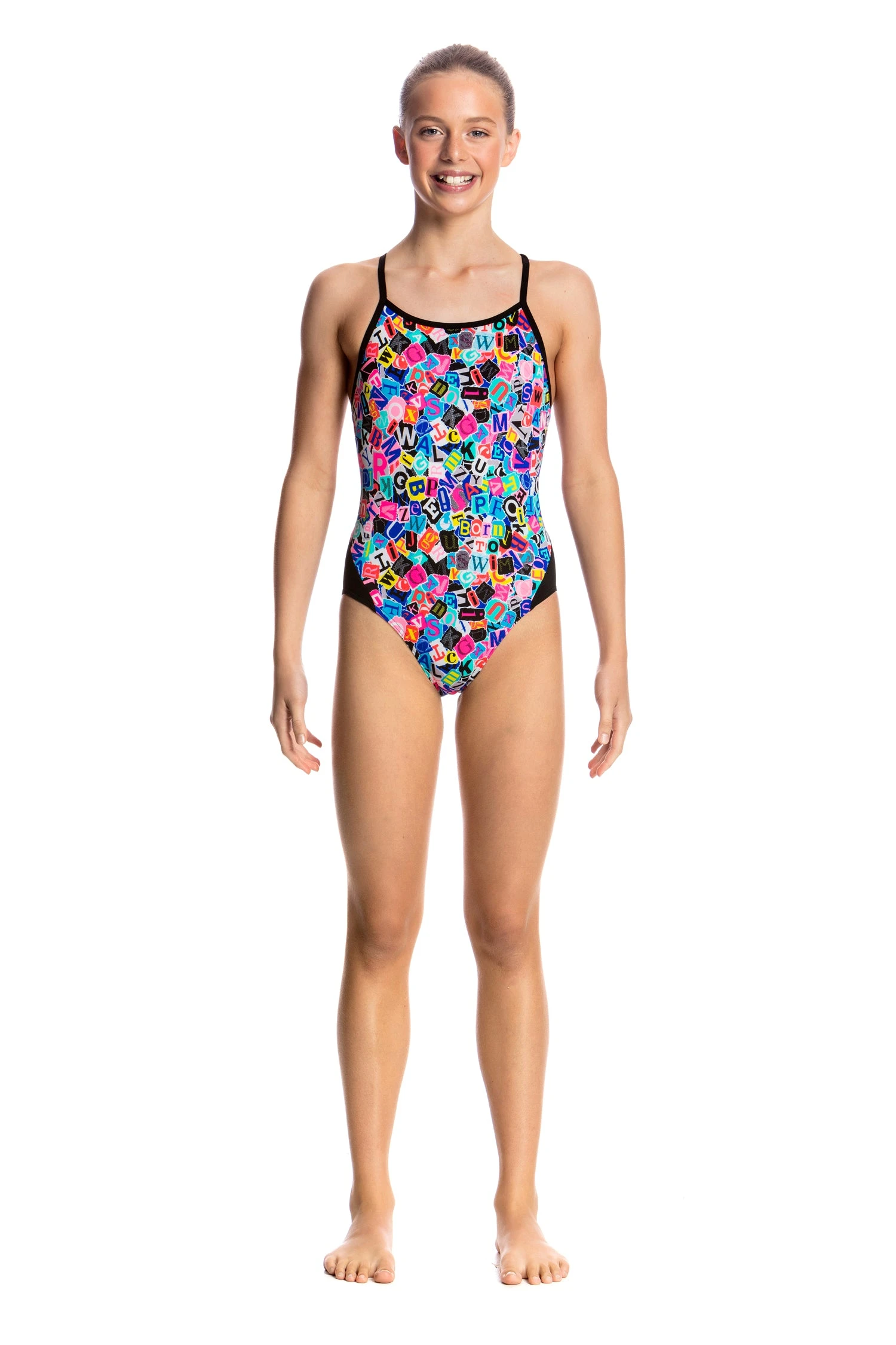 Our classic training style with signature diamond back strap finish and modest rear coverage is perfect for lap sessions. Features a circular cut-out back. With front lining and Funkita embroidery, this easy style says it all. Available in girls’ sizes 8 – 14.