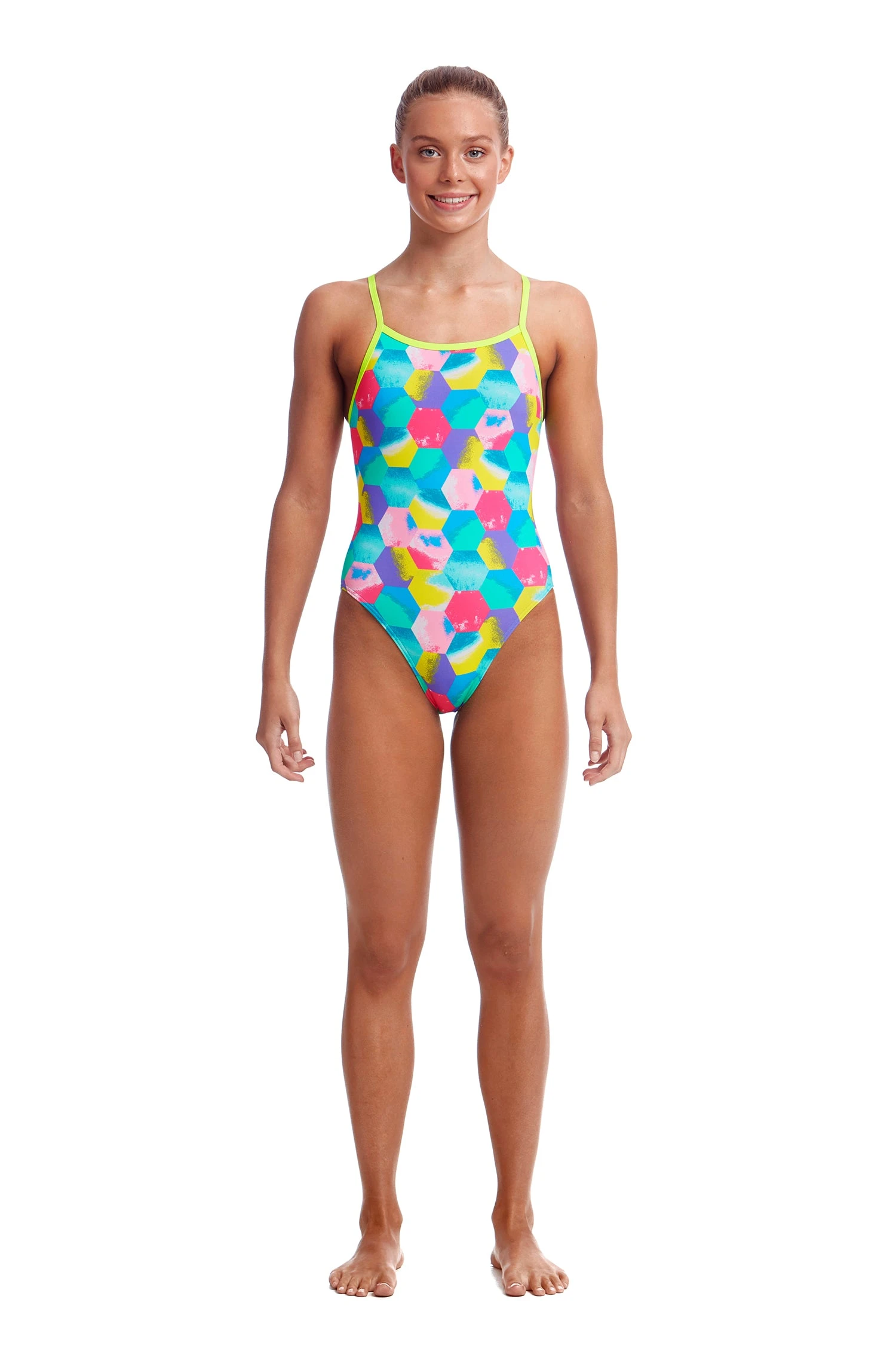 Made from our exclusive C-Infinity fabric, a 100% Italian polyester that is a colourful breakthrough in chlorine resistant fabric technology! The superior choice for swimmers, C-Infinity has exceptional strength and can retain its durability far beyond other elastane swimwear fabrics. Ideal for frequent pool use for recreational and performance based swimming.