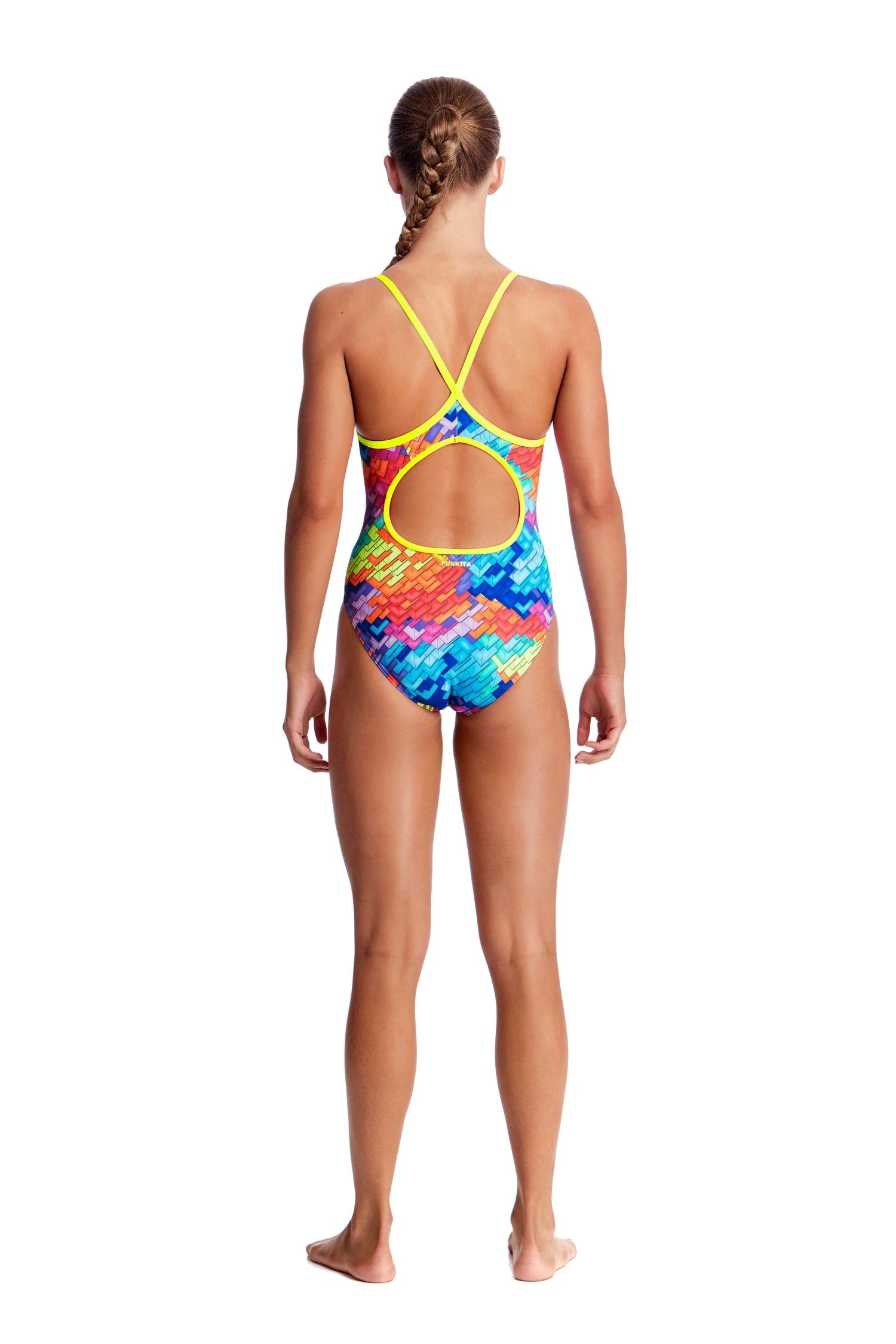 Our classic training style with signature diamond back strap finish and modest rear coverage is perfect for lap sessions. Features a circular cut-out back. With front lining and Funkita embroidery, this easy style says it all.