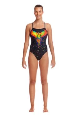 Single strap one piece with strappy V shaped back. Excellent durability and freedom of movement with single bind finish and an open back that will flatter your sporty shape. With full front lining, this is the perfect style for those long hours of training in the pool.
