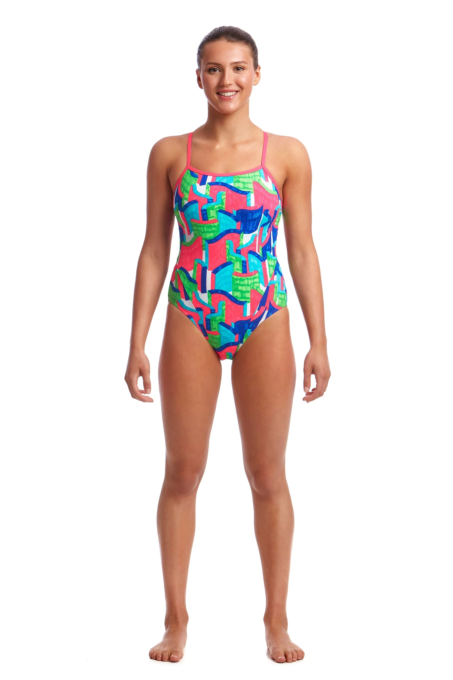 Single strap one piece with strappy V shaped back. Excellent durability and freedom of movement with single bind finish and an open back that will flatter your sporty shape. With full front lining, this is the perfect style for those long hours of training in the pool.
