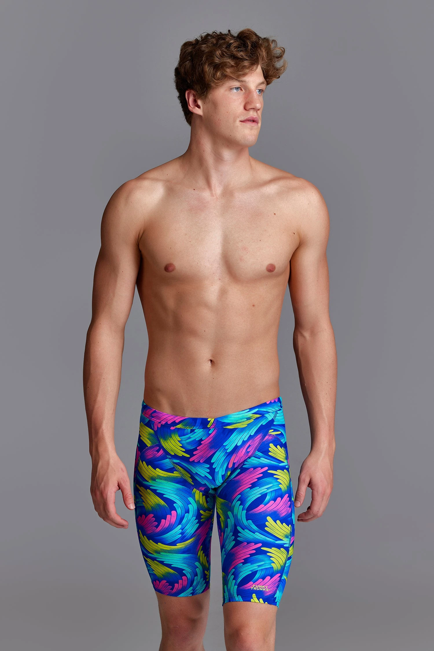 Let’s get the clothes off and jam together. I’ll give you hip-to-knee coverage with contoured panelling, flatlock stitching and front pouch lining.