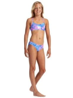 The Active Sports Bikini is designed to provide competitive and active swimmers with a fully functional two piece swimsuit. The sports bikini top features thin shoulder straps designed to reduce the weight placed on the neck and shoulder muscles, while the back is tapered for a more fashionable look. The sports bikini pants have sleek 3cm sides with a medium leg height. The hidden waist drawstring provides a secure fit. The sports bikinis are lined in the front only.
