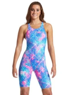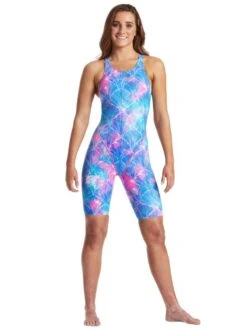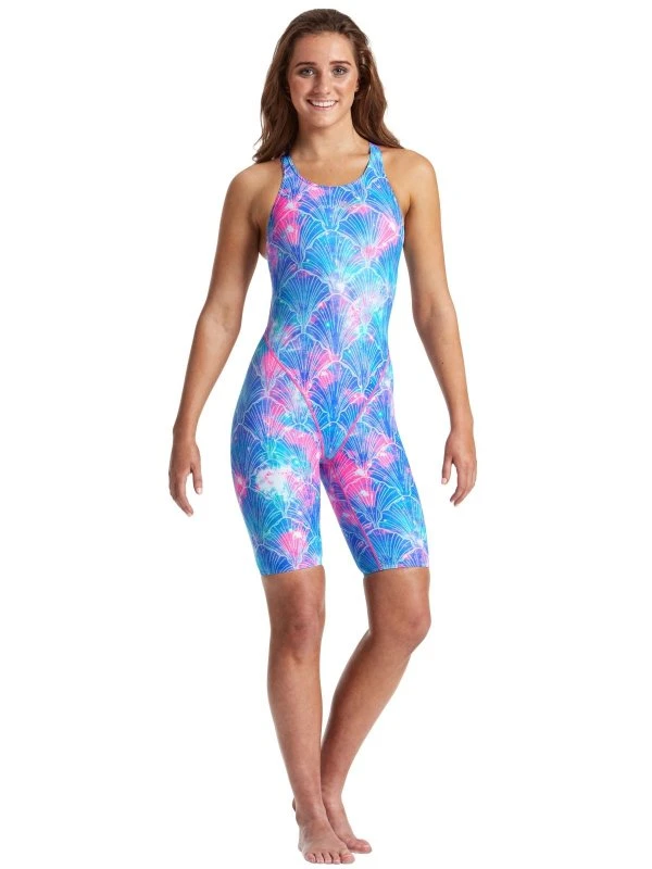 The wide shoulder straps and back band are placed between the shoulder blades allowing maximum freedom and ease of movement whilst swimming. They also provide added support to the bust area. The wide open back follows the natural contours of the body providing an ergonomic fit and superior comfort. The leg height sits approx. 5cm above the knee. Gusset lining only.