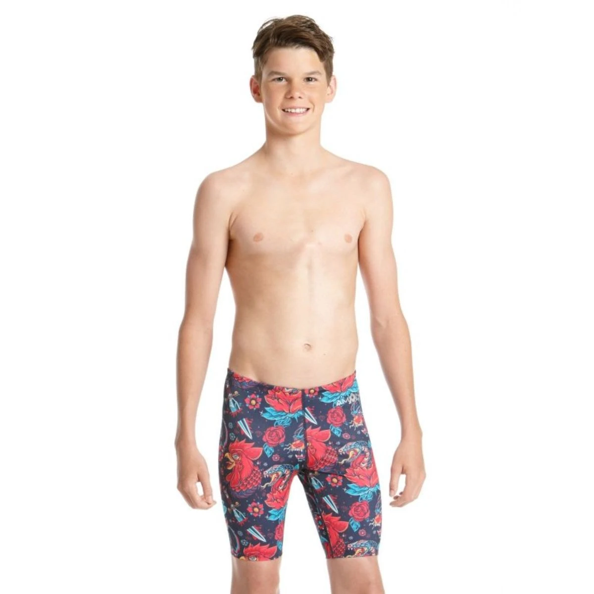 A rooster crowing not enough to stir you out of bed in the morning? How about a scary rooster? A hissing serpent? Or maybe even a growling tiger? Swimmers all know what a struggle it can be to get out of bed in the morning. Between training and other obligations, sleep is an absolute must. Often AMANZI swimmers don’t get enough of it! Jump start your attitude with the wild style of the Oblivion Jammers. Covered in ferocious critters, these jammers might just scare you out of bed, so that you can make it to the dreaded early morning swim practice.